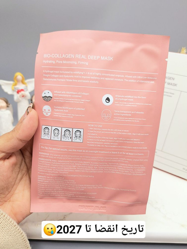 - یک ماسک کلاژن پروبیوتیک حاوی کلاژن با وزن مولکولی فوق سبک و فیلتر تخمیر گالاکتومایسس